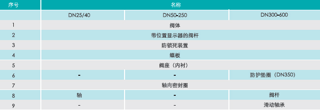 結(jié)構(gòu): 模塊化結(jié)構(gòu) 安裝長度符合ISO5752/20標準 通過多樣的材料選擇實現(xiàn)通用性 頂端平臺連接符合ISO5211標準 泄漏測試標準有EN 12266-1/P12 泄露率A 蝶閥安全要求遵循歐洲壓力設備97/23/EC管理條例 密封件采用特殊的幾何形狀設計,可滿足更大通徑閥門的安全密封性 優(yōu)點: 扭矩小 安裝方便 連接方式多樣 溫度和壓力范圍廣 全面符合最新國際規(guī)范 更多的適用規(guī)格和更高的性價比 技術參數(shù): 閥類: 襯膠蝶閥 閥體材質(zhì): GGG40 工作壓力: 0-16 bar 最高工作溫度℃: 150 ° C 通徑范圍DN : 25-600