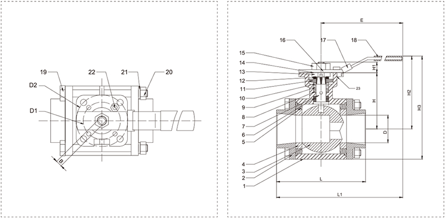 結(jié)構(gòu): 閥桿防爆出裝置設(shè)計 閥體設(shè)計合理便于快速拆裝 頂端平臺連接符合ISO5211標(biāo)準(zhǔn) 容易實現(xiàn)自動化控制和遠(yuǎn)距離控制 通道平整光滑,不易沉積介質(zhì),易于清洗 優(yōu)點: 流體阻力小 密封性能好 閥桿密封可靠 開關(guān)迅速,方便 全面符合最新國際規(guī)范 技術(shù)參數(shù): 閥類: 金屬球閥 閥體材質(zhì): 1.4408,CF3M 工作壓力: 0-63 bar 最高工作溫度℃: 180 ° C 通徑范圍DN : 8-100